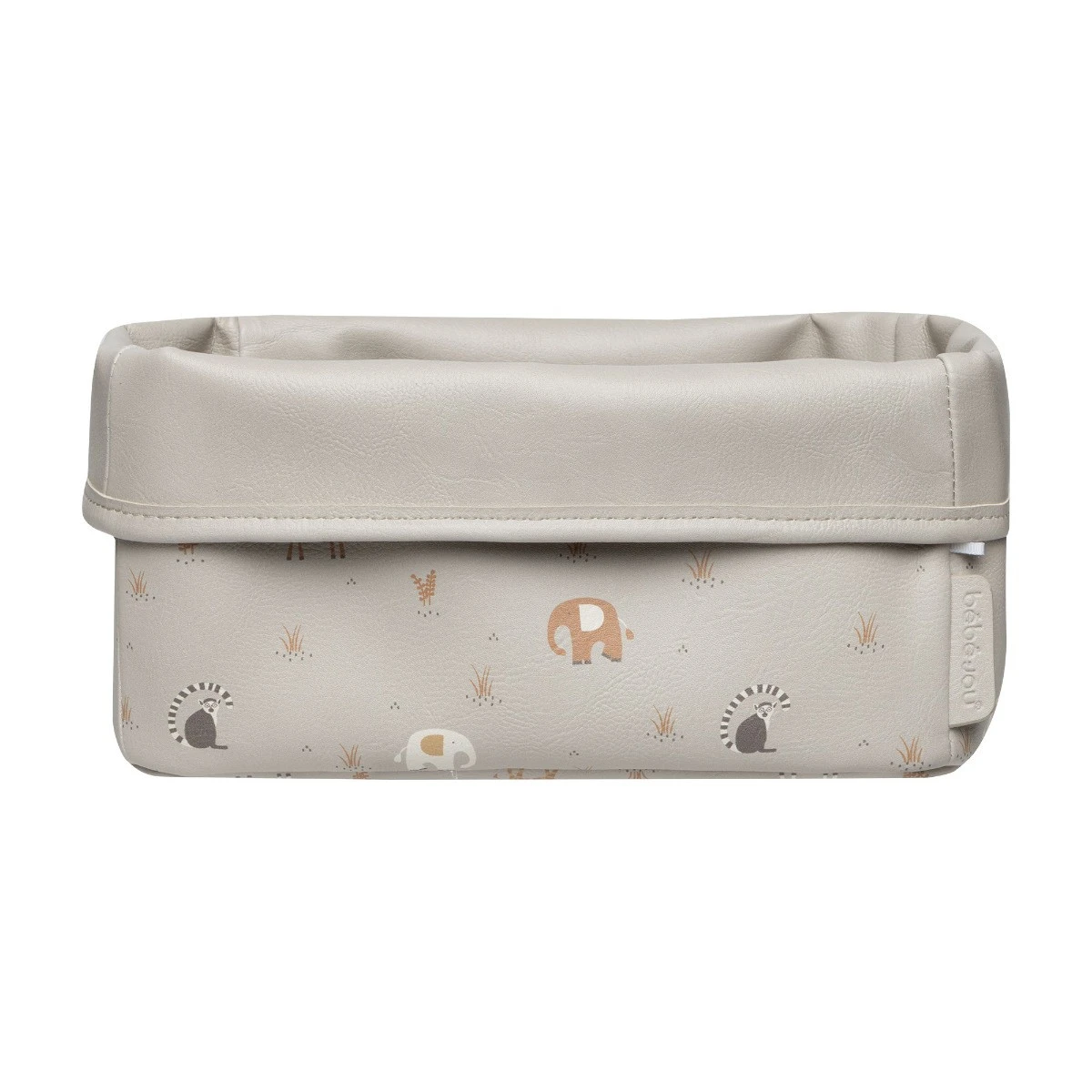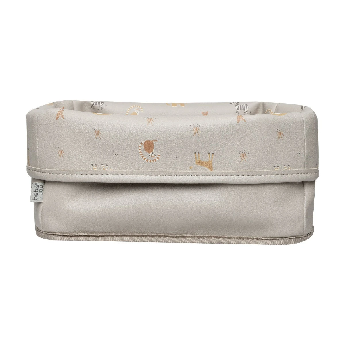 Dit Bébé-Jou Verzorgingsmandje uit de Steppe collectie is voorzien van mooie print met verschillende dieren, een echte eyecatcher voor iedere babykamer! In het mandje kun je verschillende verzorgingsproducten opbergen, zoals b.v. een kammetje, borstel, nagelschaartje, zeep en lotion.