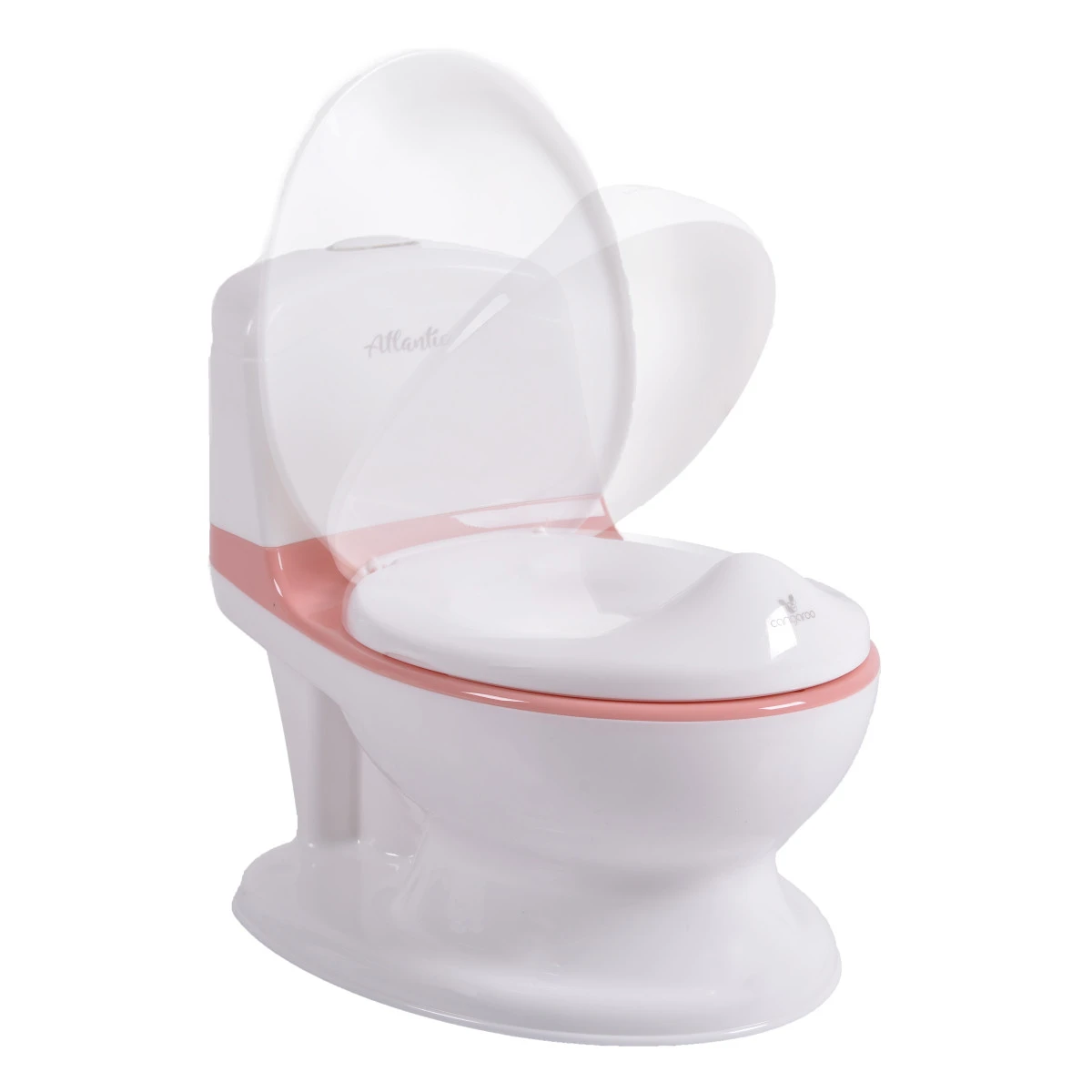 De Atlantic heeft een deksel die omhoog en omlaag kan zoals een normale wc-bril. Tevens dient het als soort rugleuning en geeft het je kindje ondersteuning. Het uitneembare potje maakt het voor jou als ouder gemakkelijk om hem te legen en schoon te maken. De doorspoelknop met geluidseffecten van stromend water maakt het potje echt compleet!