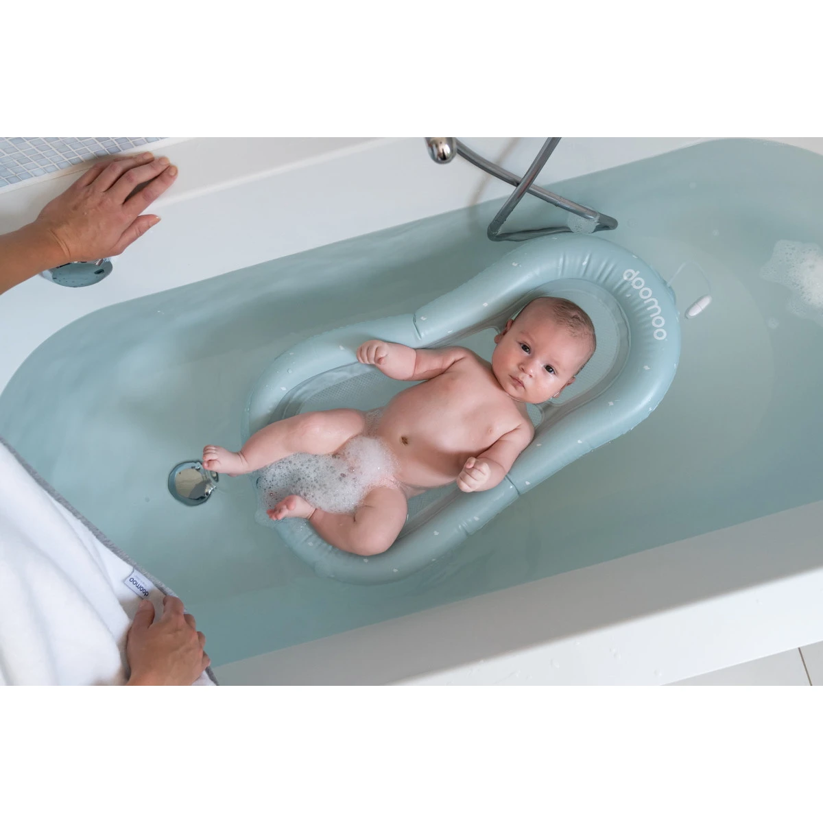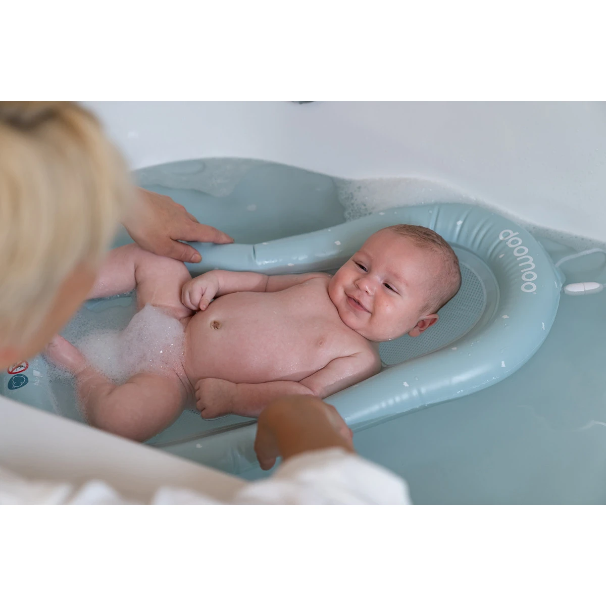Dit mooie opblaasbare badmatrasje van Doomoo is een uniek en innovatief product waarmee je je kleintje altijd en overal een comfortabel badje kunt geven. Het matrasje heeft een opblaasbare buitenrand waardoor het in het bad blijft drijven en zo van een groot bad een klein badje maakt. Het binnenste gedeelte van netstof is water doorlatend zodat je kindje altijd lekker warm in het water kan liggen.