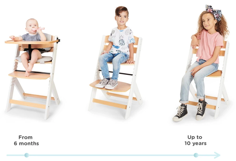 Kinderkraft Enock Wit/Naturel Houten Kinderstoel Met Zitverkleiner KHENOC0PWHT0000