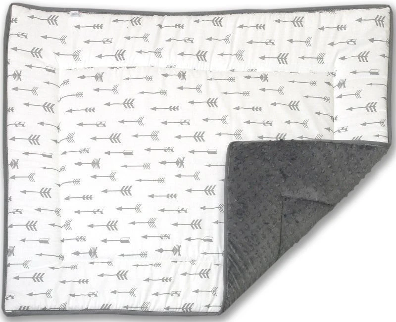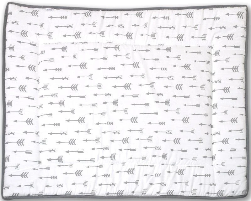 Iedere box is al een prachtige speeltuin voor een kindje in ontwikkeling en met dit stijlvolle boxkleed van MamaLoes maak je de box helemaal af. Het boxkleed is wit van kleur met een vrolijk grijs pijltjes design en een mooie velourse afwerking wat het boxkleed een heerlijk zacht en rijke exclusieve uitstraling geeft!