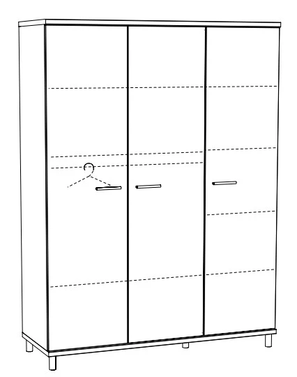 3-Deurskast Naomi past perfect in iedere baby- of kinderkamer. Deze mooie kast biedt zeer veel ruimte om de kleding van je kleine in op te bergen. De kast is gemaakt van hoogwaardig plaatmateriaal met melamine en is dus ook zeer stevig. Deze kast heeft 3 openslaande deuren van grijs houtlook met zilveren grepen. De binnenkant bestaat uit een groot hanggedeelte en een aantal planken.