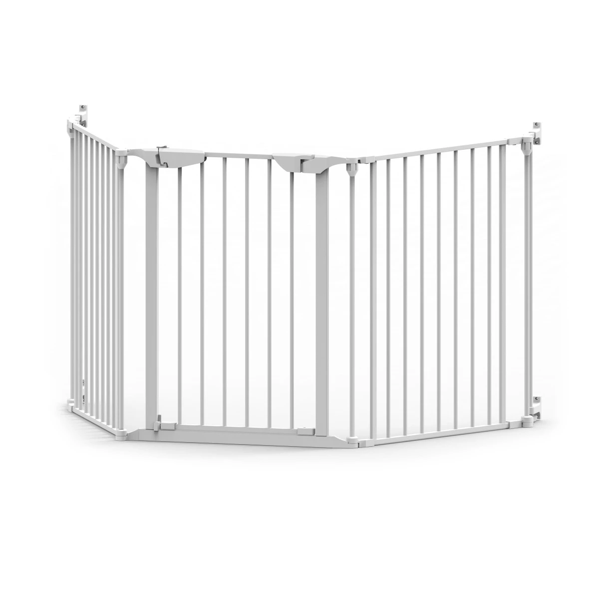 Met de Noma 5-delige kamerverdeler kun je grote en kleine ruimtes afsluiten of veilig stellen voor je kleine. Het multifunctionele veiligheidshek is speciaal ontworpen voor grotere openingen, tot een maximale lengte van maar liefst 315 cm. Het traphekje kan zowel dienen als traphek, kamerverdeler, box, en haardhek. Je kunt het hek dankzij de 5 afzonderlijke panelen zowel schuin als recht plaatsen.