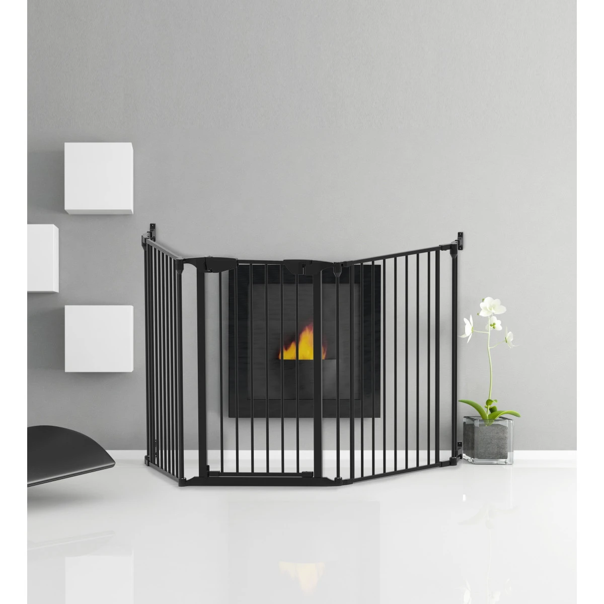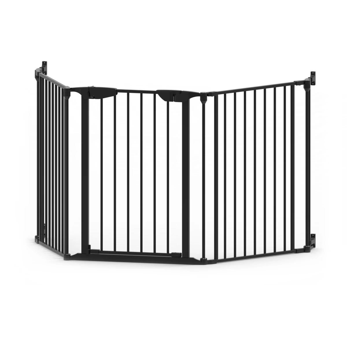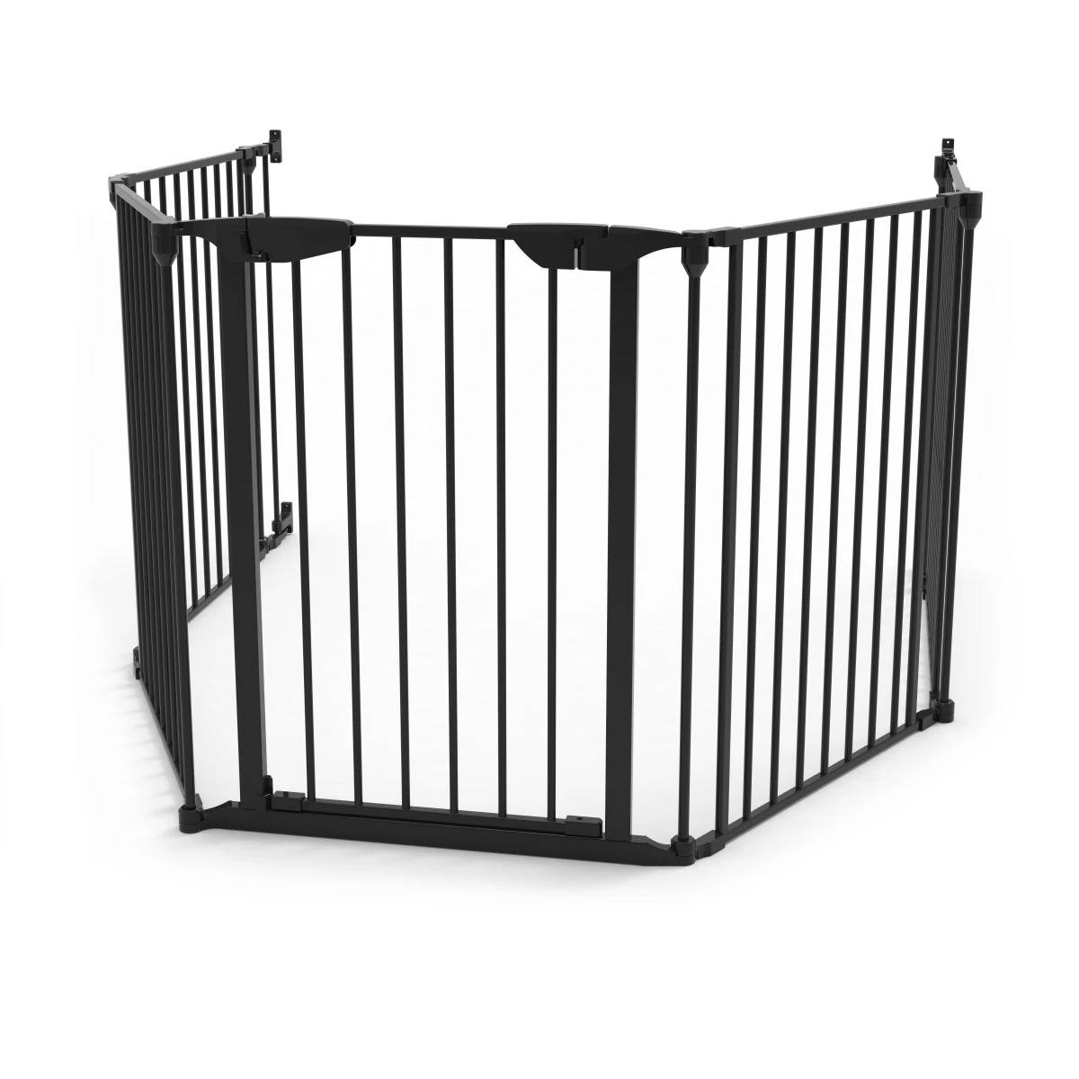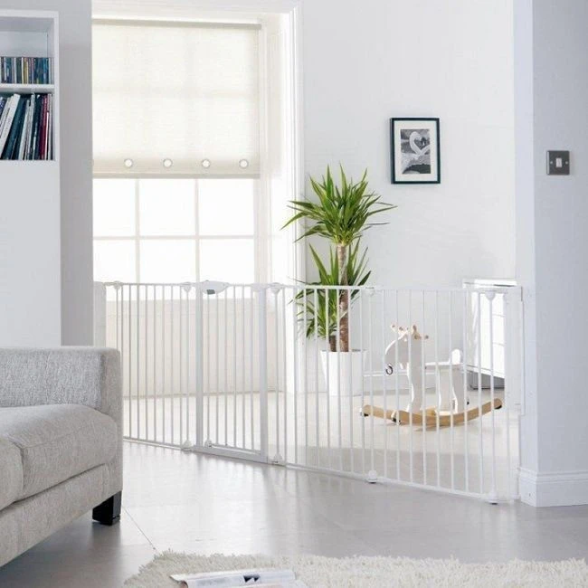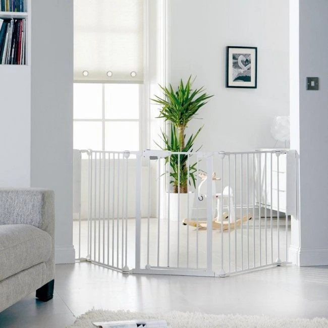 Met de Noma 5-delige kamerverdeler kun je grote en kleine ruimtes afsluiten of veilig stellen voor je kleine. Het multifunctionele veiligheidshek is speciaal ontworpen voor grotere openingen, tot een maximale lengte van maar liefst 315 cm. Het traphekje kan zowel dienen als traphek, kamerverdeler, box, en haardhek. Je kunt het hek dankzij de 5 afzonderlijke panelen zowel schuin als recht plaatsen.