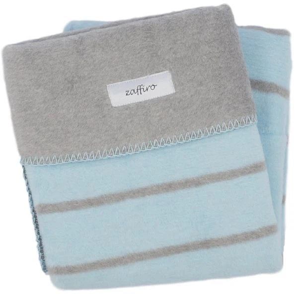 De dekentjes van Zaffiro zijn prachtig! Ze zijn gemaakt heerlijk zachte stof wat uit 100% katoen bestaat. Je kindje zal snel in dromenland belanden onder dit lekker warme dekentje! Het dekentje is lichtblauw en grijs gestreept, met aan de andere kant de kleurtjes omgekeerd. Hij heeft de afmetingen 75 x 100 cm.